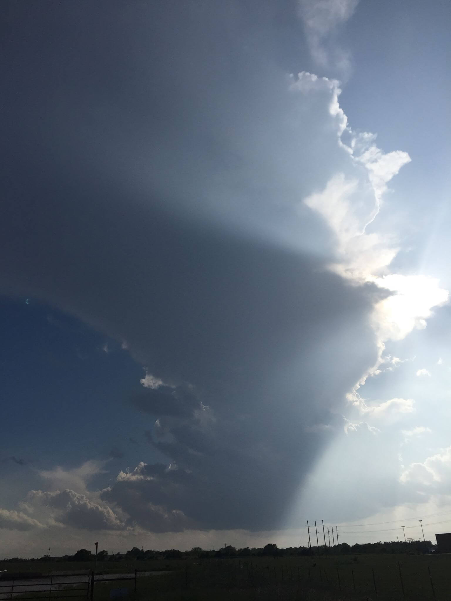 Outflow boundaries do not function the way regular fronts do, and can be both lifting and stabilizing mechanisms for severe thunderstorms. However, with ample sunshine and moisture, it was likely for an isolated supercell or two to initiate off the dryline Monday afternoon. Our target: Woodward, Oklahoma.