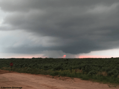 Upon arrival in Leoti, the surface winds were backed (meaning they were blowing in a counterclockwise direction out of the southeast). That is a good sign needed or the potential development for tornadoes as it enhances low-level wind shear. However, strong capping delayed thunderstorm initiation by a few hours.