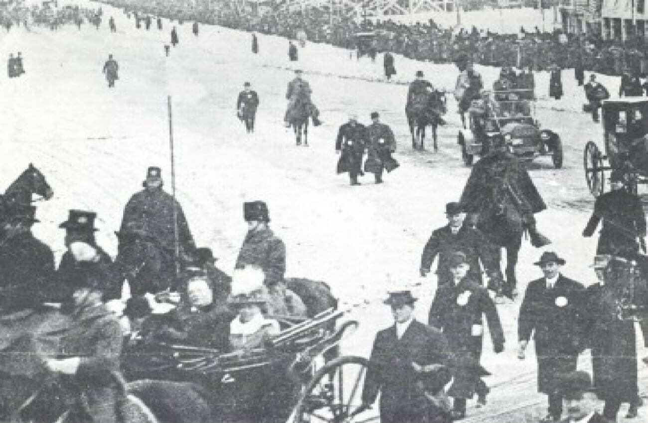 I remember being frozen solid as the parade ended and I walked briskly, for about a block and a half, to the lobby of the Hotel Harrington where I was able to slowly thaw out.